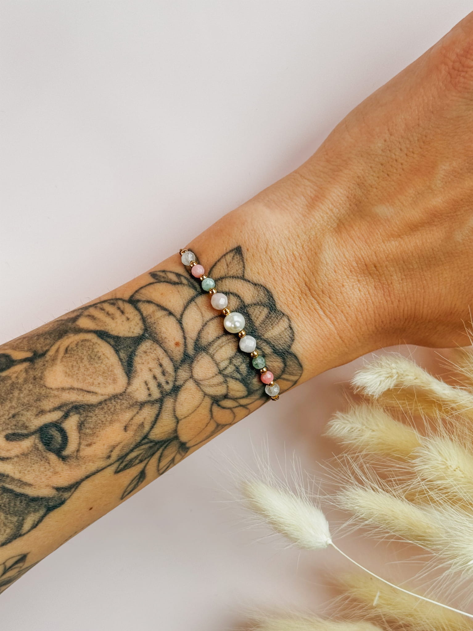 Całość dopełniają delikatne, szklane przekładki japońskie. Znane z wysokiej jakości i precyzyjnego wykonania. Jednocześnie nadają bransoletce nowoczesny i szlachetny charakter.