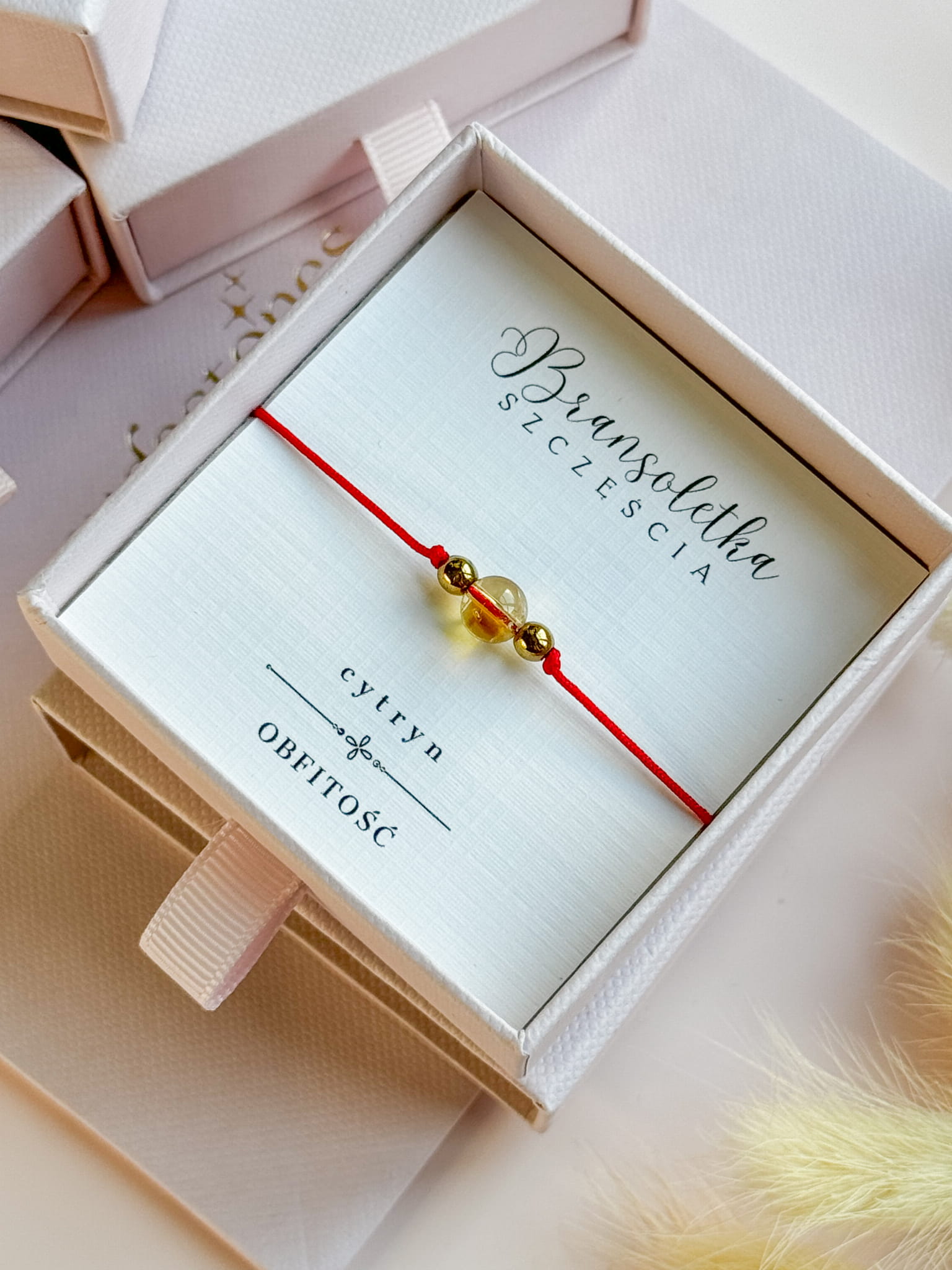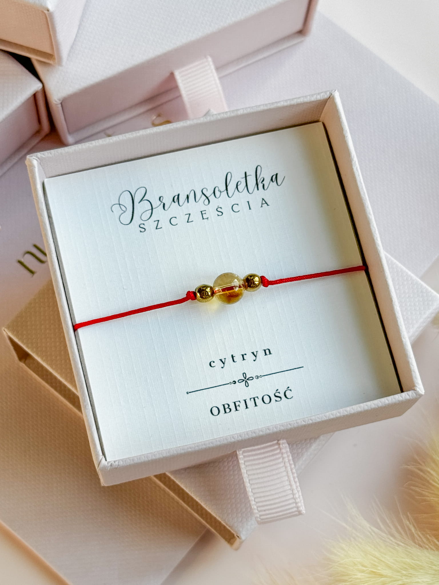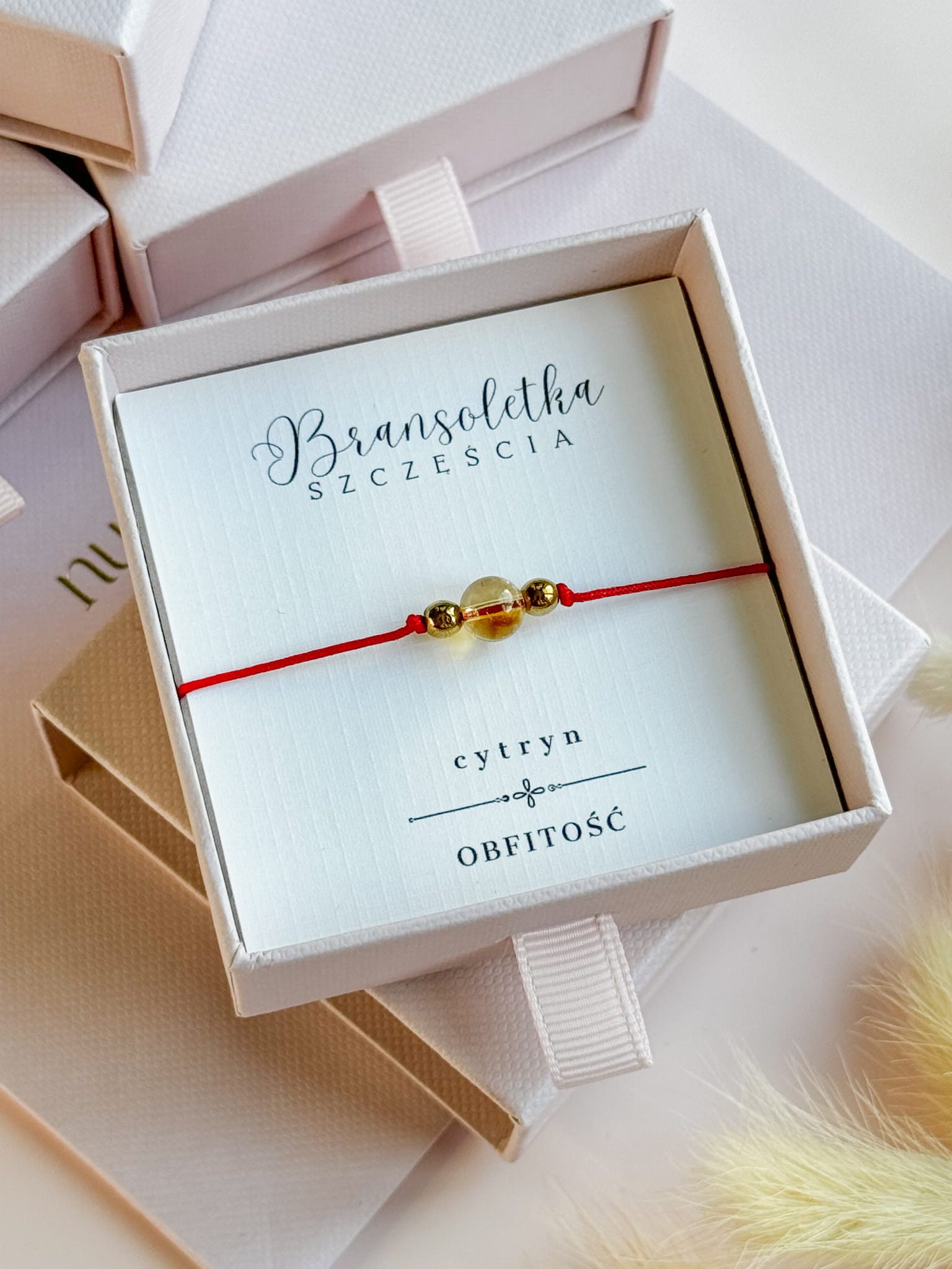 Bransoletka Szczęścia z Cytrynem na czerwonej nici