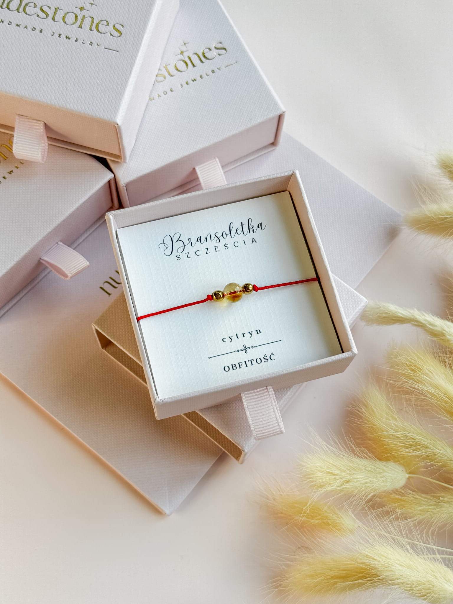 Bransoletka jest zapakowana w eleganckie pudełeczko jubilerskie lub sakiewkę. W opcji podstawowej karteczka z nazwą kamienia. Istnieje możliwość personalizacji lub dołączenia dodatkowej kartki, z opisami kamieni. Nasza firma stawia na jakość, dlatego każde zamówienie jest pakowane tak, aby bransoletka nie została uszkodzona podczas transportu.