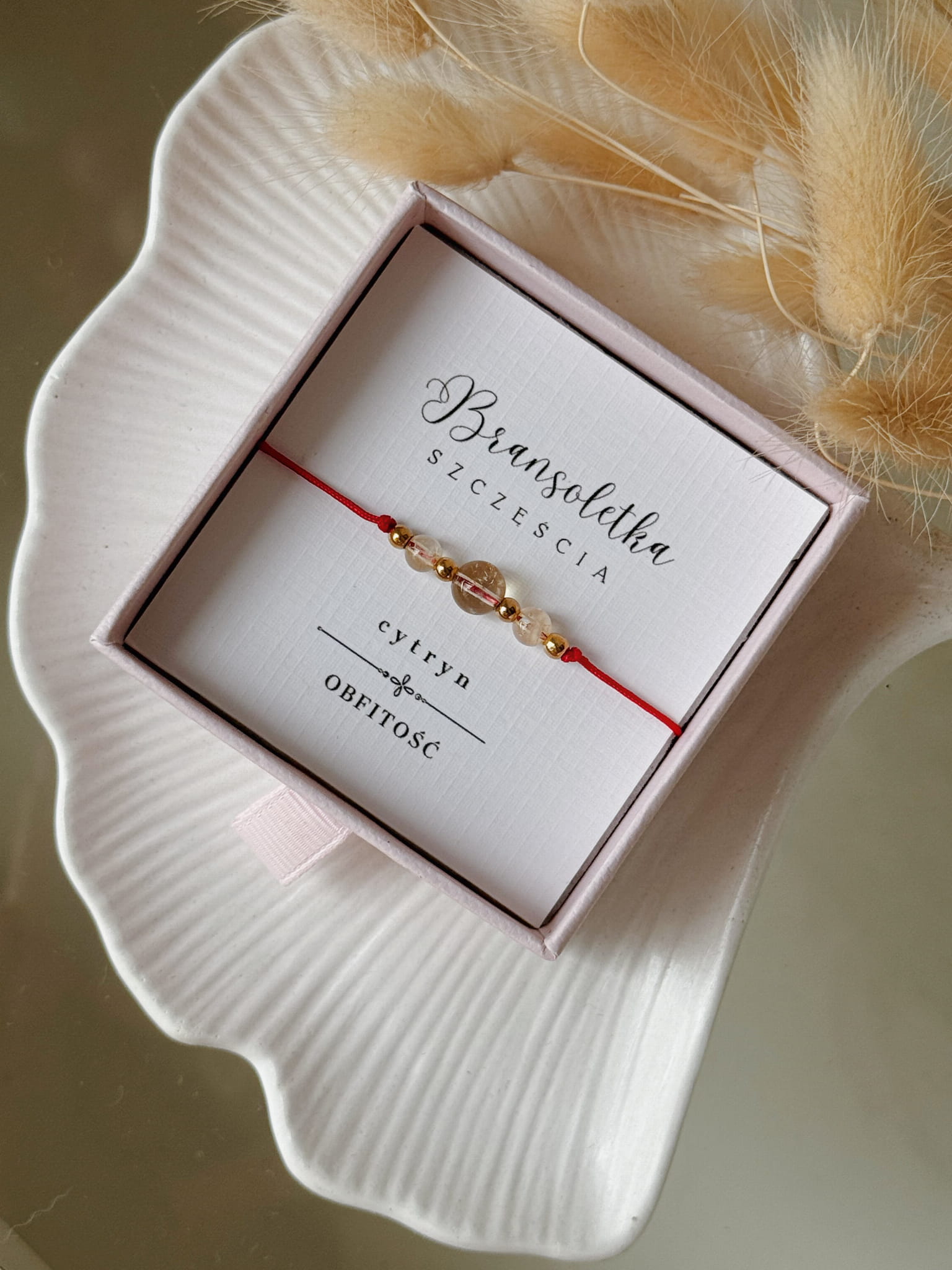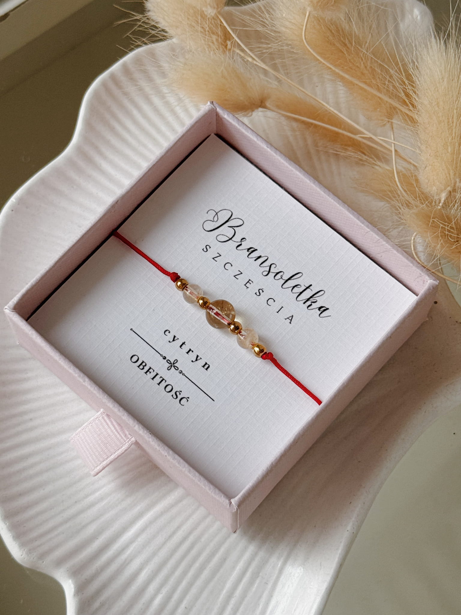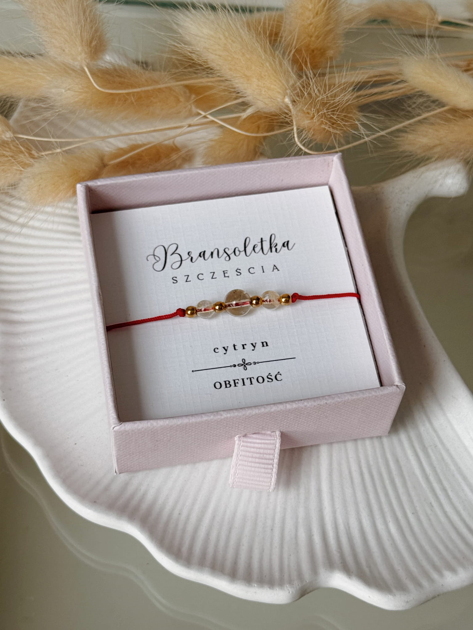 Bransoletka Szczęścia Talizman Cytryn Kamień Naturalny Czerwona Nitka.