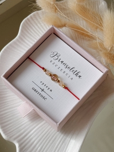 Bransoletka z kolekcji "Szczęście", to delikatny i kobiecy dodatek, stworzony z kamieni naturalnych. Wykonana z najwyższej jakości sznurka plecionego w kolorze czerwonym.