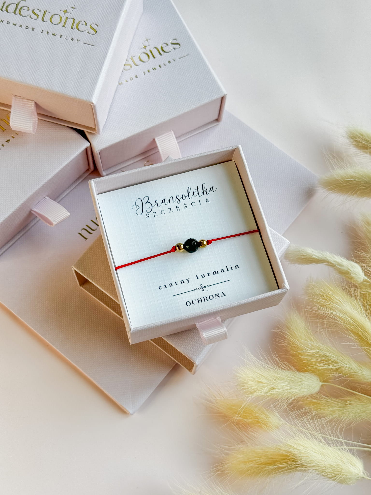 Bransoletka jest zapakowana w eleganckie pudełeczko jubilerskie lub sakiewkę. W opcji podstawowej karteczka z nazwą kamienia. Istnieje możliwość personalizacji lub dołączenia dodatkowej kartki, z opisami kamieni. Nasza firma stawia na jakość, dlatego każde zamówienie jest pakowane tak, aby bransoletka nie została uszkodzona podczas transportu.
