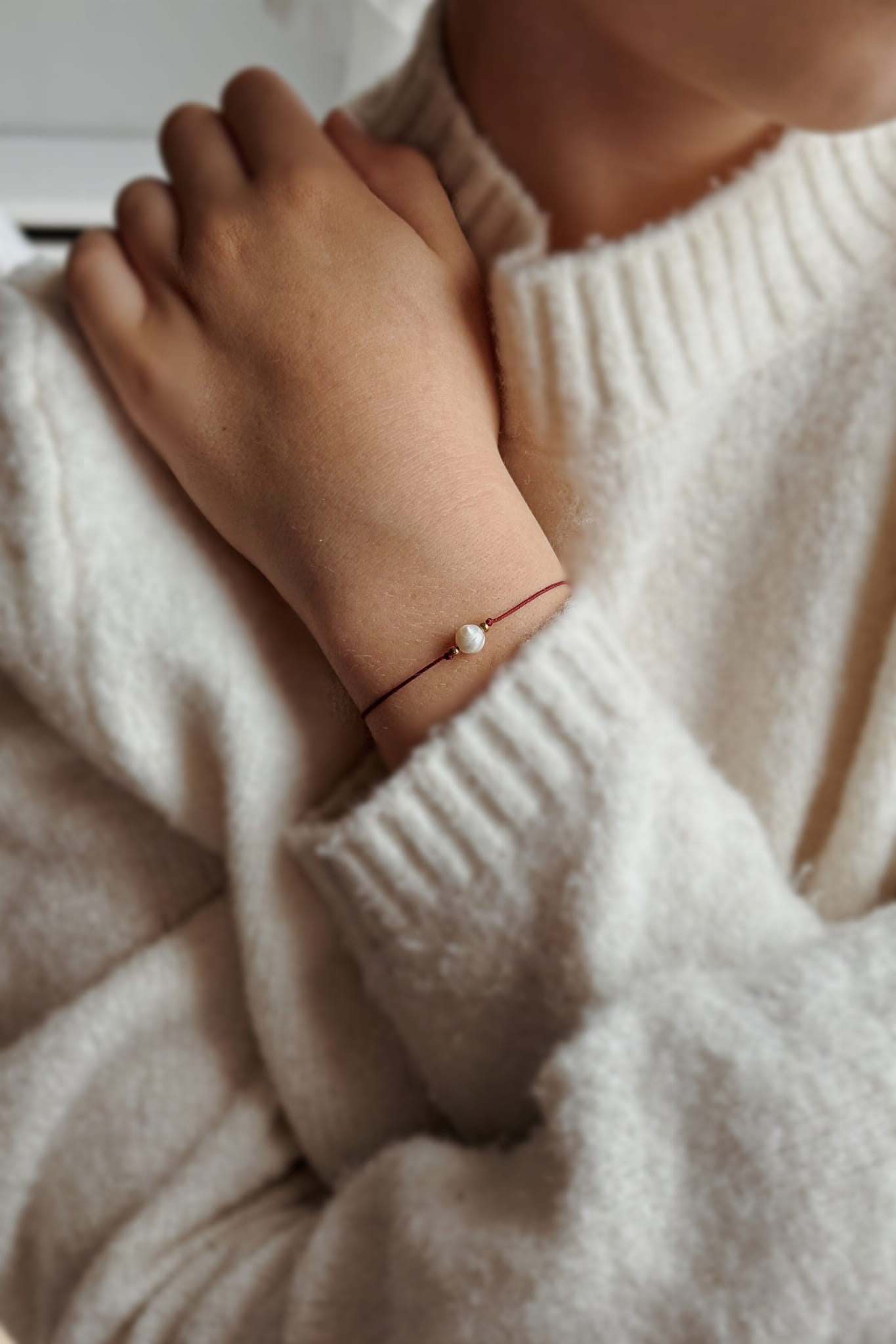 Bransoletka z kolekcji "Szczęście", to delikatny i kobiecy dodatek, stworzony z kamieni naturalnych. Została wykonana z najwyższej jakości nylonowego sznurka, perły słodkowodnej oraz hematytów.