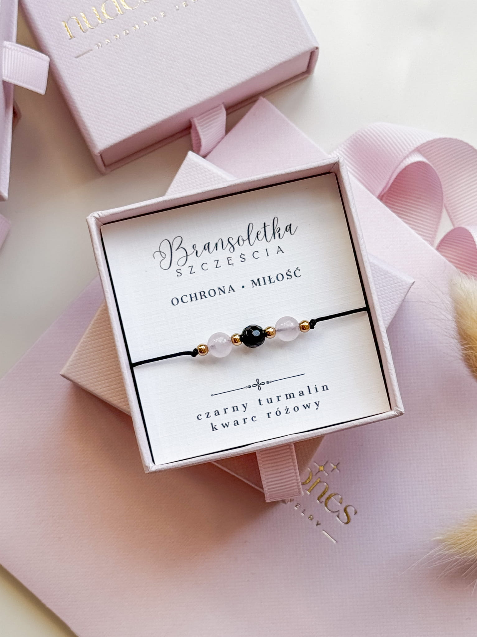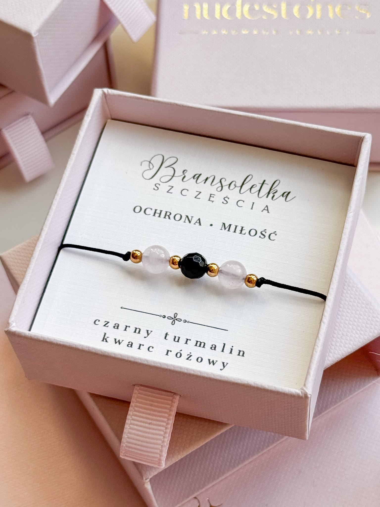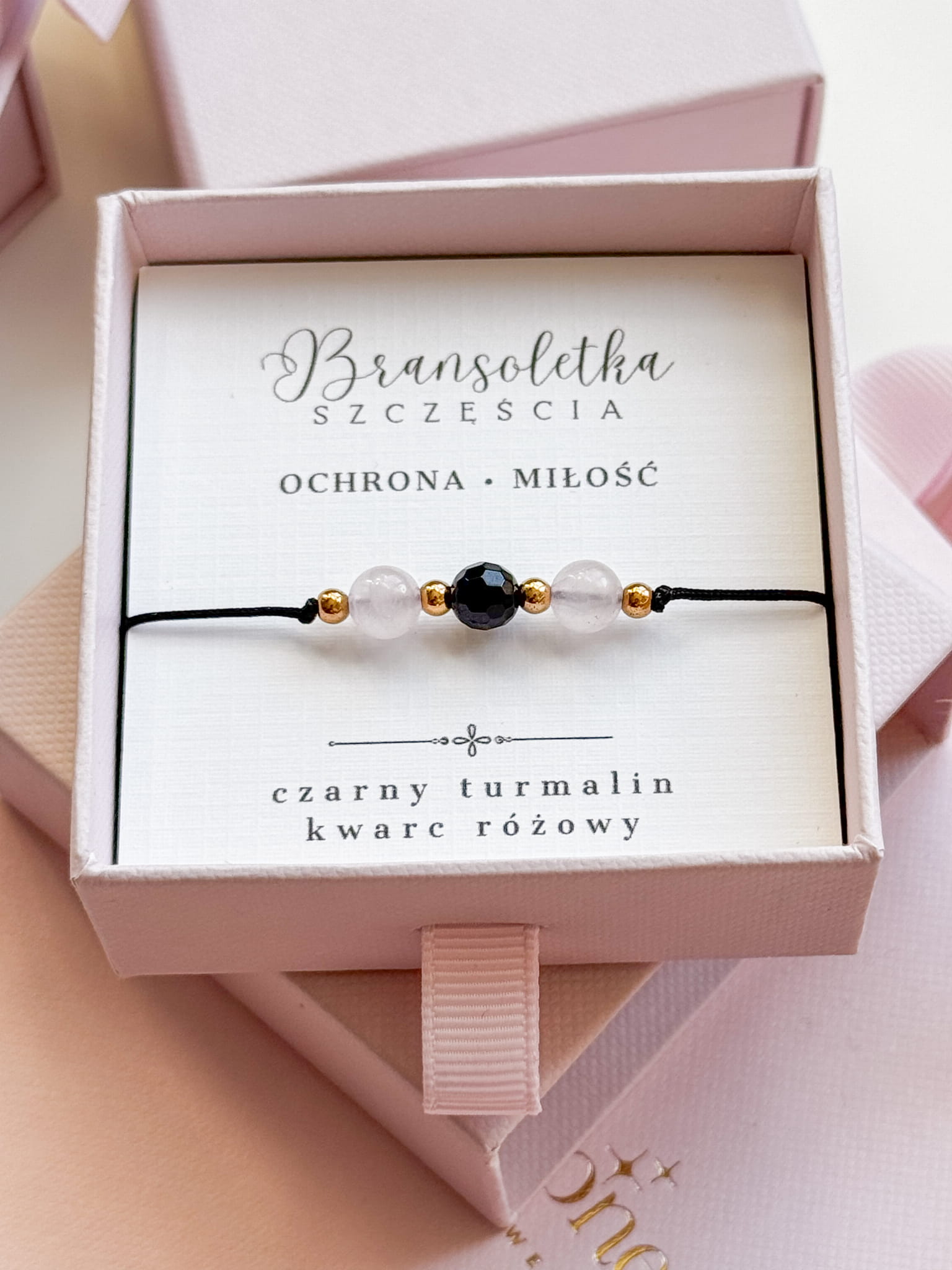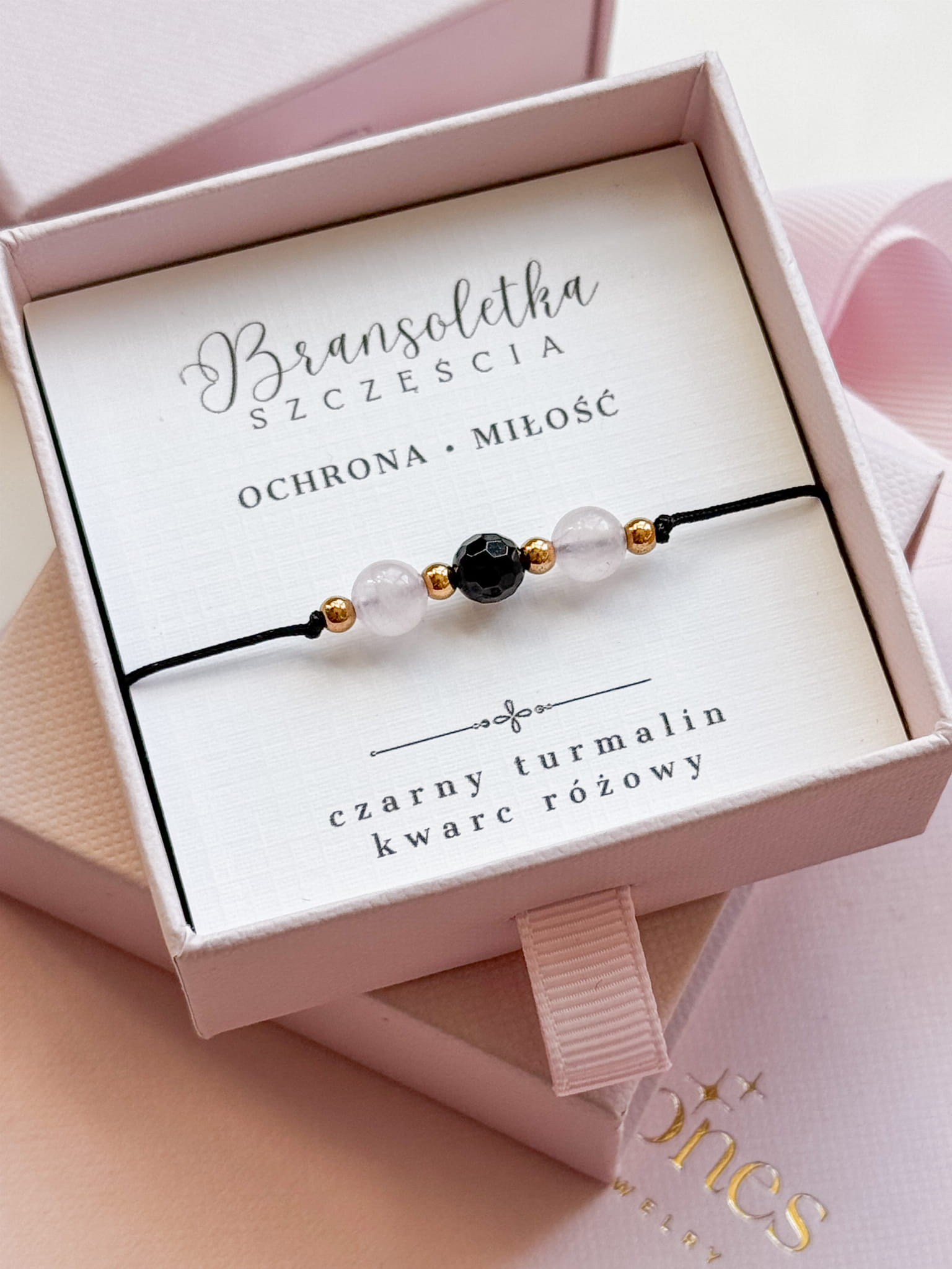 Bransoletka Szczęścia Różowy Kwarc Czarny Turmalin | Miłość i Ochrona
