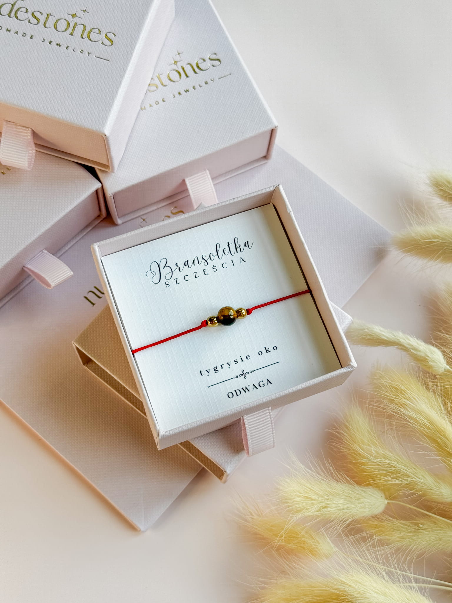Bransoletka jest zapakowana w eleganckie pudełeczko jubilerskie lub sakiewkę. W opcji podstawowej karteczka z nazwą kamienia. Istnieje możliwość personalizacji lub dołączenia dodatkowej kartki, z opisami kamieni. Nasza firma stawia na jakość, dlatego każde zamówienie jest pakowane tak, aby bransoletka nie została uszkodzona podczas transportu.