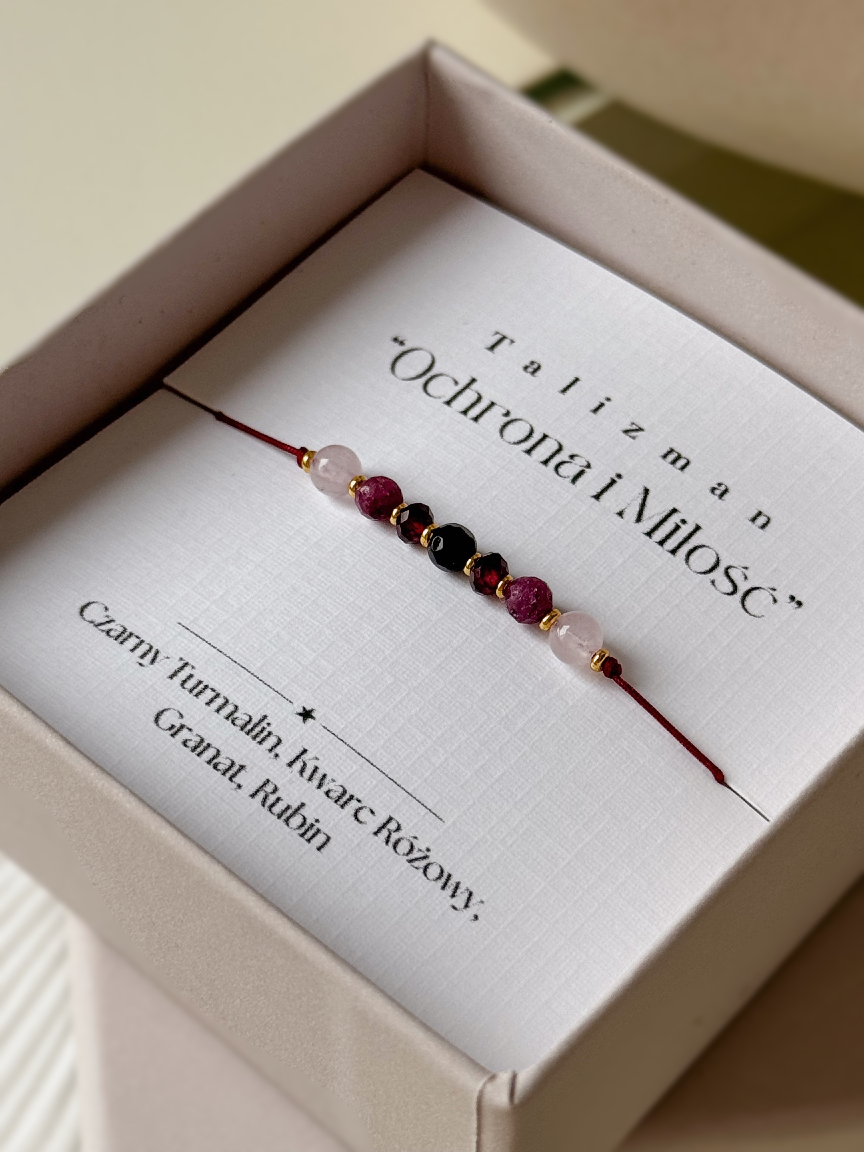 Bransoletka Talizman Ochrona i Miłość | Czarny Turmalin, Kwarc Różowy, Rubin, Granat